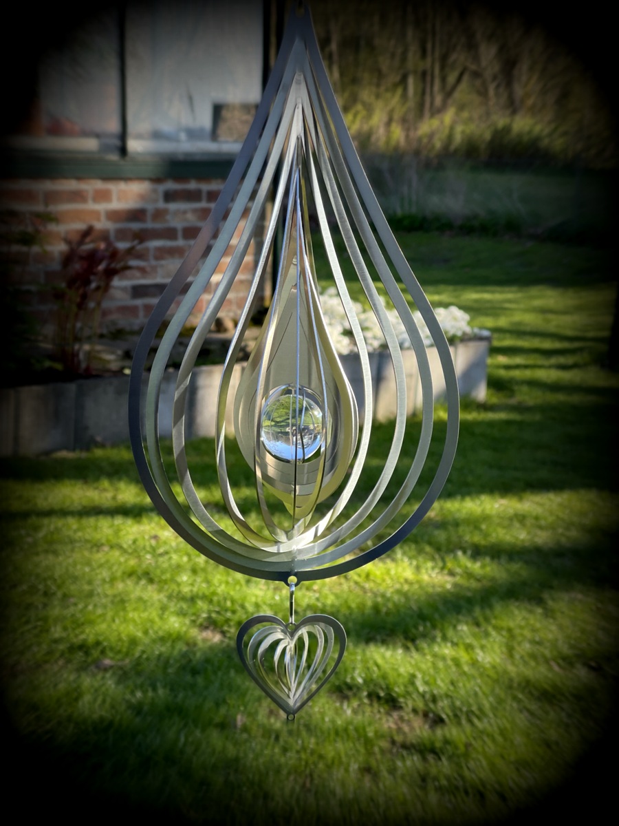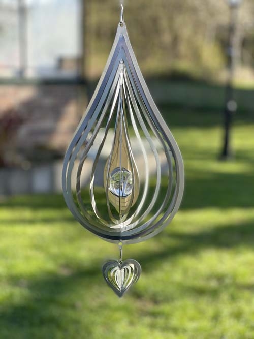 Droppen levereras med ett litet rostfritt hjärta ca 6 cm undertill