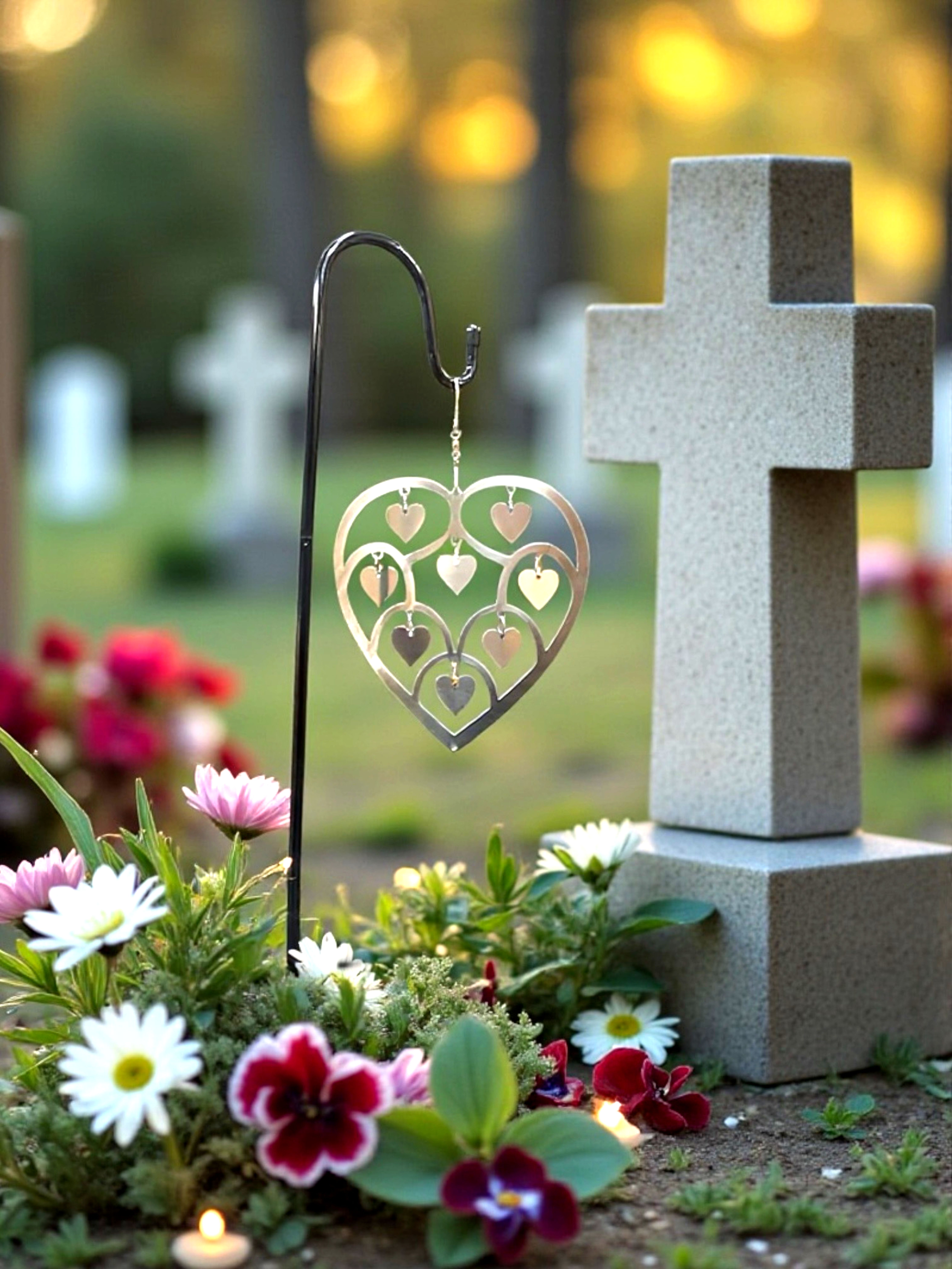 Perfekt som gravdekoration. Kan sättas på kyrkogården vid graven.